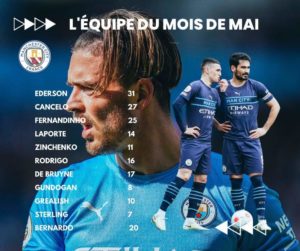 - Les joueurs les plus utilisés : Ederson, João Cancelo, Aymeric Laporte, Fernandinho, Rodri et Olkesandr Zinchenko (5 matchs sur 5 possibles)