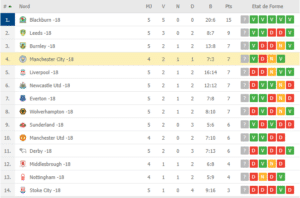 Au classement, City est 4ème après 4 rencontres, avec déjà 8 points de retard sur le leader Blackburn, qui possède un match en plus à son actif :