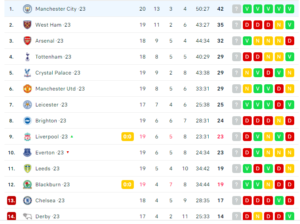 Au classement, City est donc toujours seul leader avec 42 points, et possède 7 points d’avance sur West Ham :