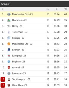 City s’est donc largement imposé face au premier relégable, Southampton, et dispose donc de 5 points d’avance sur Blackburn, 2ème.