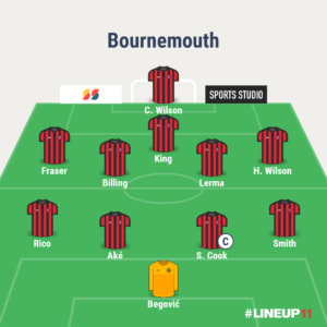 On imagine un 4-4-1-1, composition maîtrisée par Bournemouth. Cela leur permet d’avoir un milieu solide et de se projeter en contre. Cela permet également à Eddie Howe d’associer des duos redoutables qui se connaissent bien, mêlés parfois à de la jeunesse. Néanmoins on relèvera l’absence de nombreux joueurs.