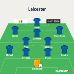 On imagine un 4-2-3-1, composition maîtrisée par les Foxes. Brendan Rodgers compte des titulaires absents et devrait aligner une formation inédite.