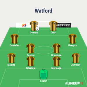 On imagine un 4-4-2, composition maîtrisée par Watford. Cela leur permet d’avoir une milieu solide et de se projeter en contre. Javi Gracia a tendance à peu changer des systèmes et rarement changer son équipe-type.