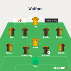 On imagine un 4-5-1, composition maîtrisée par les Hornets. Roy Hodgson devrait aligner une équipe proche de son XI-type.