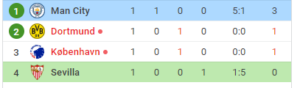 Au classement, City est donc leader en attendant le résultat final entre Dortmund et Copenhague :